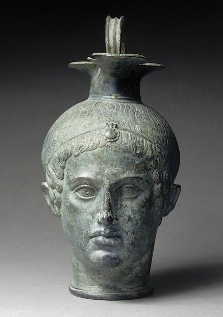 Dans la Grèce antique, une œnochoé est un pichet à vin qui sert à puiser le vin dans le cratère (un grand vase utilisé dans l'Antiquité, particulièrement chez les Grecs, pour mélanger le vin et l'eau) — où il a été coupé à l'eau — avant de le servir. Musée du Louvre